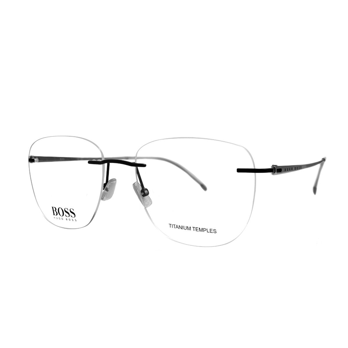 Armazón oftálmico de la marca Boss, con varillas de titanio y sin marco.