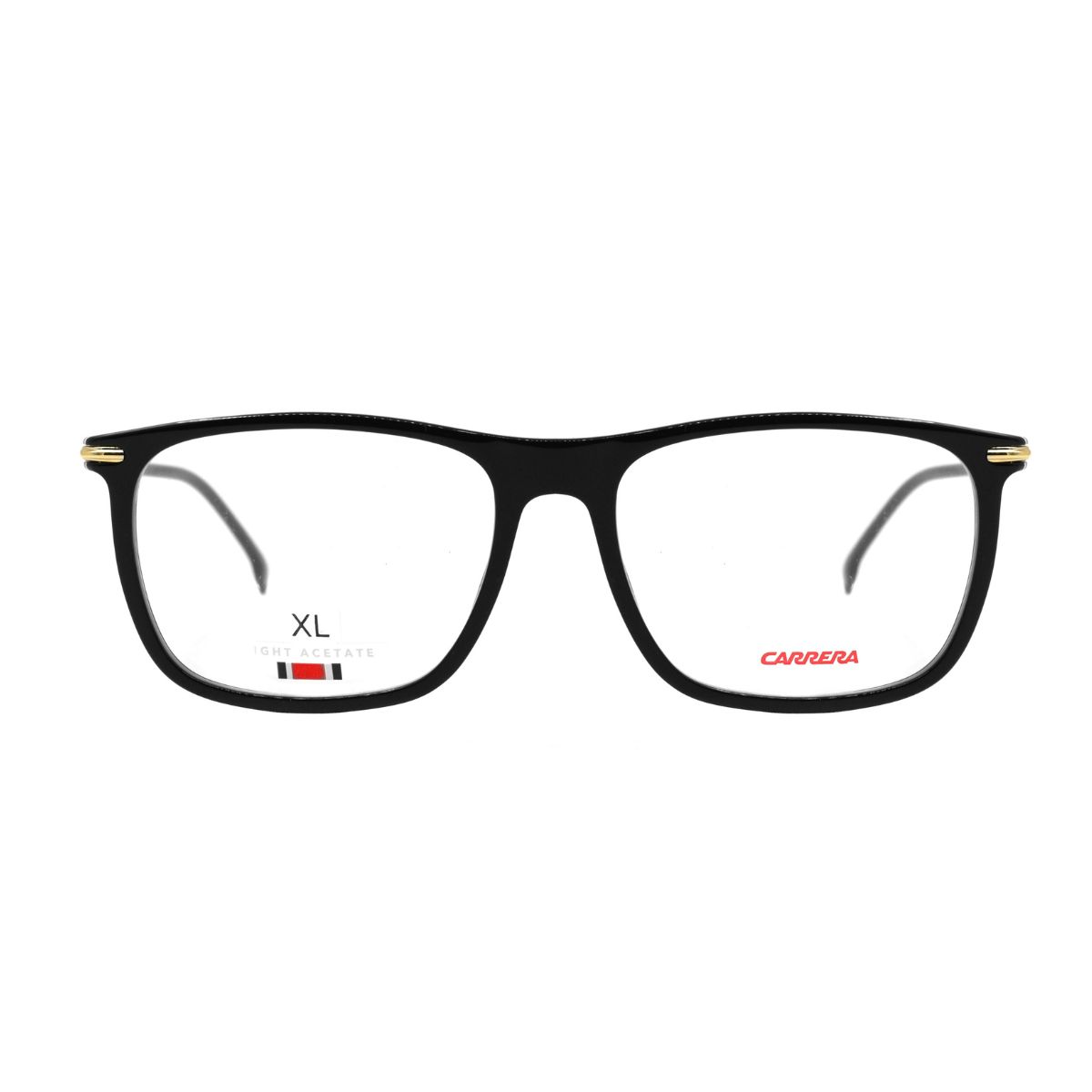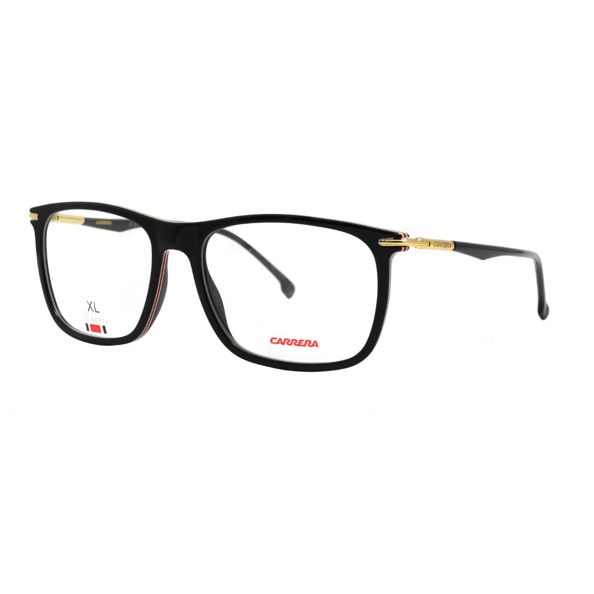 Armazón oftálmico de la marca Carrera, con varillas de acetato y marco de metal.