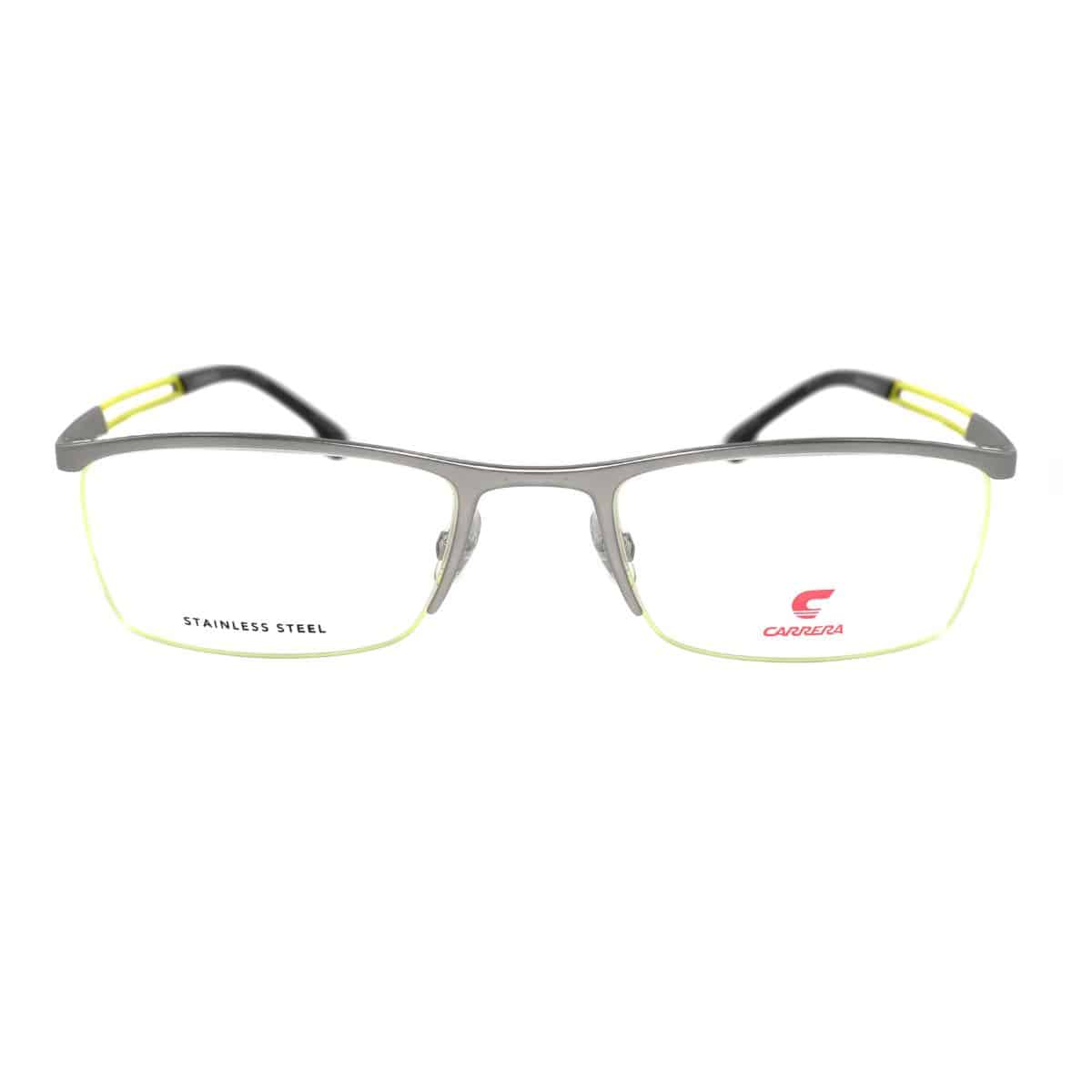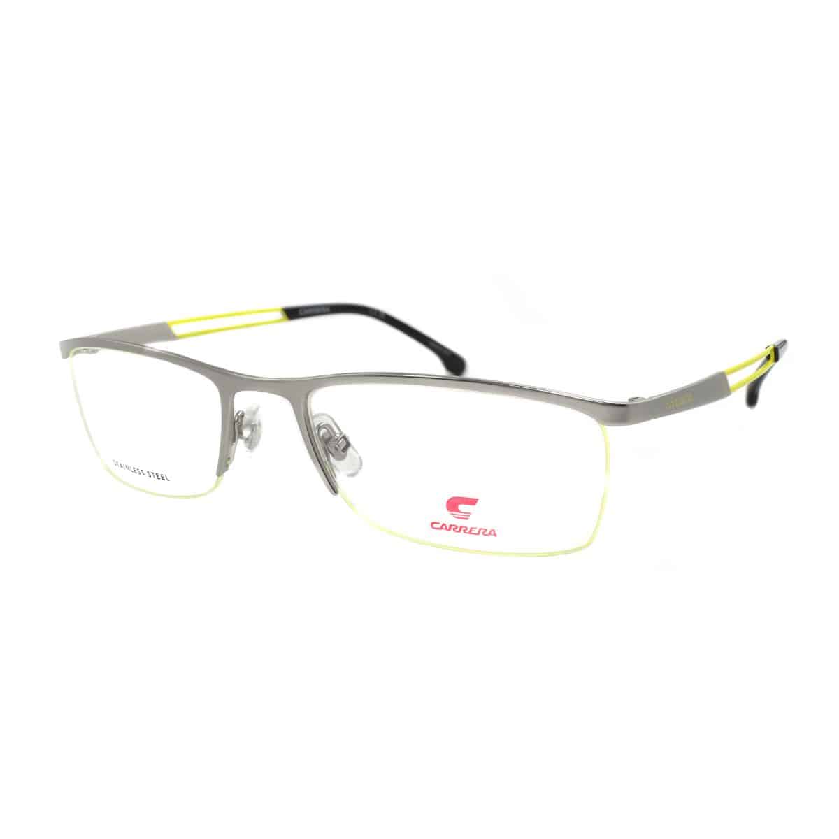 Armazón oftálmico de la marca Carrera, con varillas de acetato c/ metal y marco de metal.