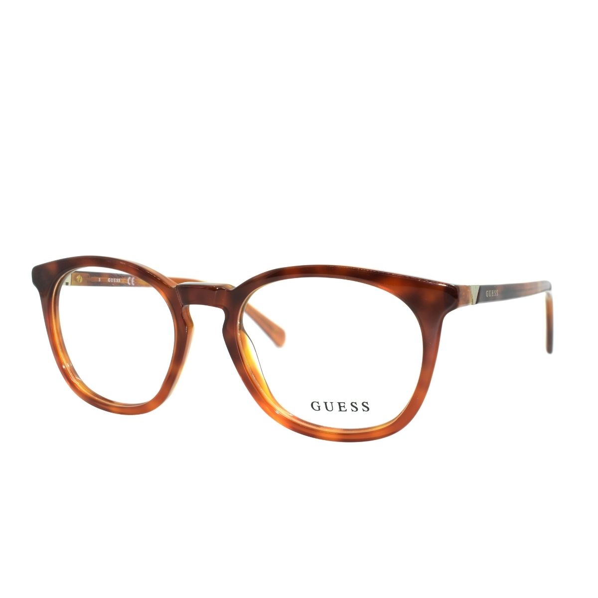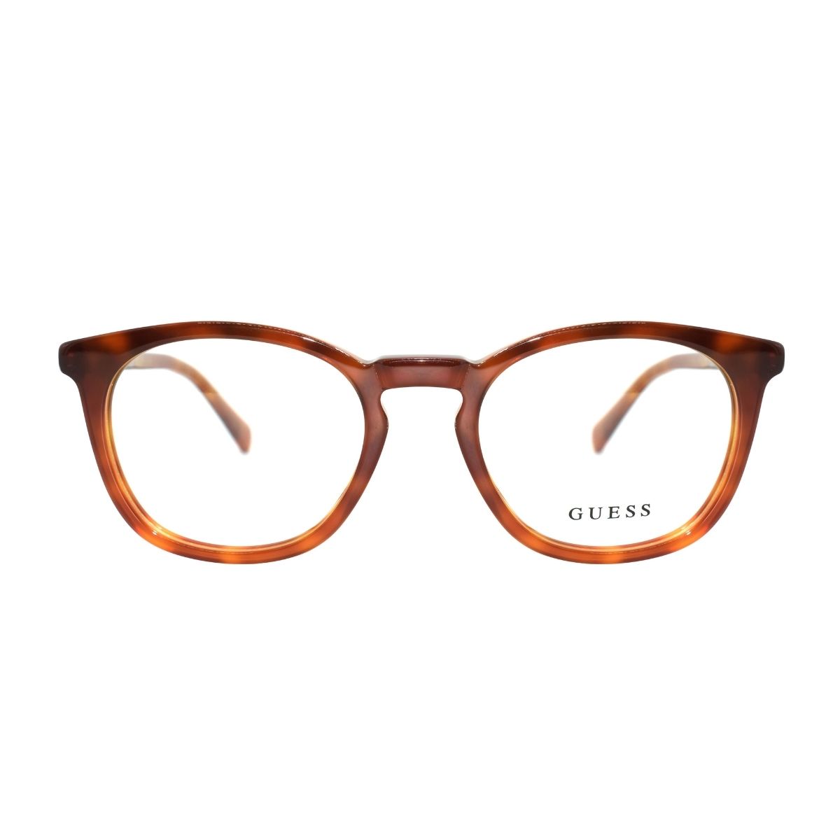 Armazón oftálmico de la marca Guess, con varillas de acetato y marco de metal.