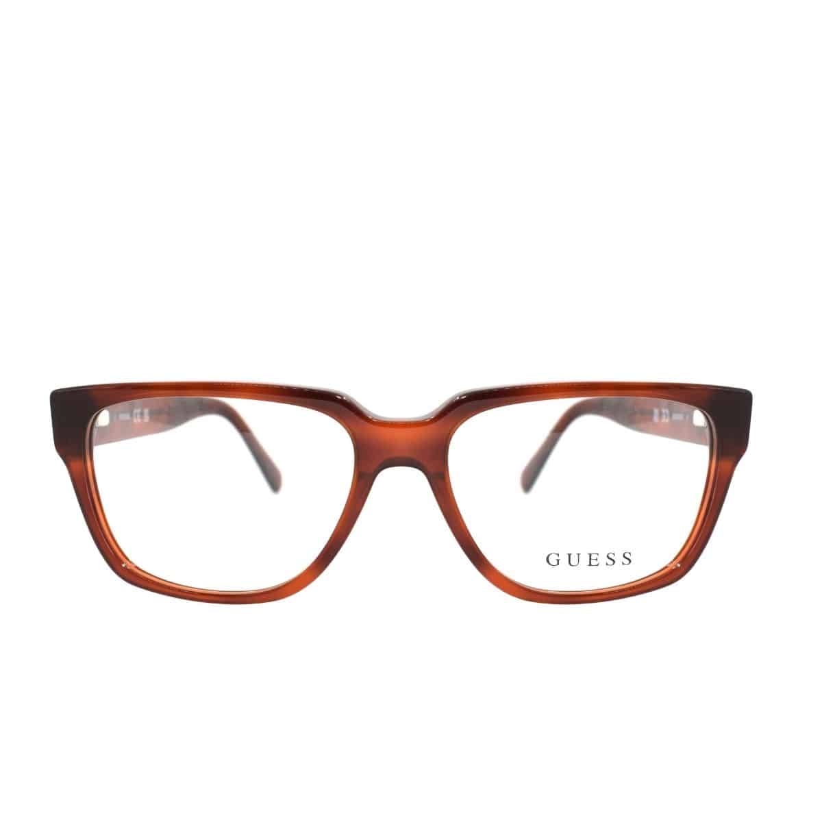 Armazón oftálmico de la marca Guess, con varillas de acetato y marco de metal.