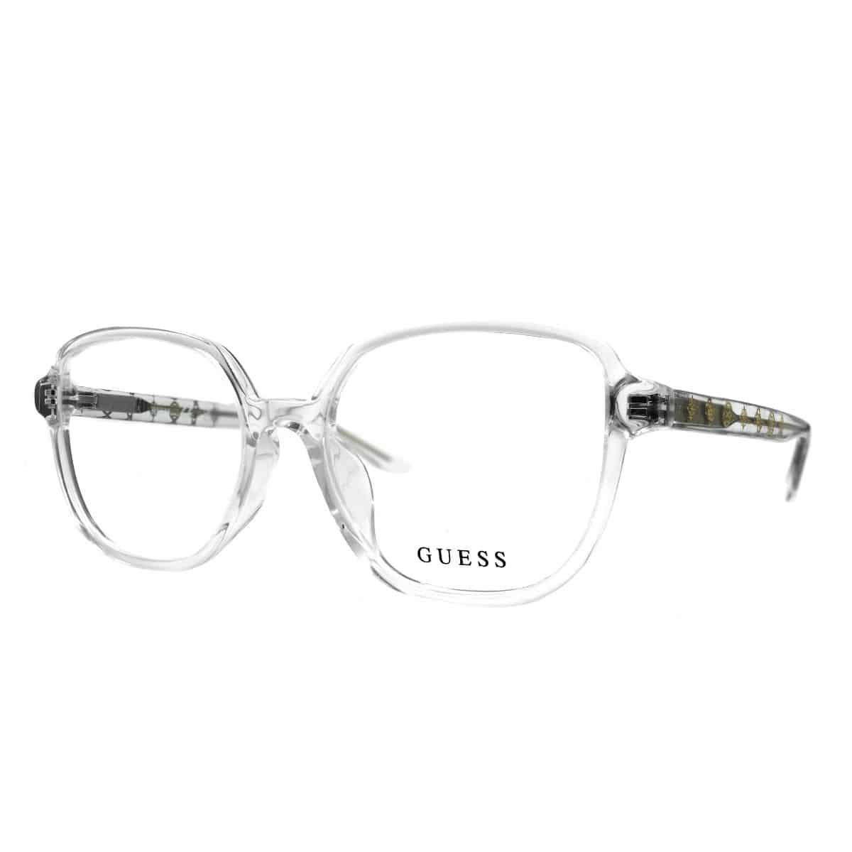 Armazón oftálmico de la marca Guess, con varillas de acetato y marco de metal.