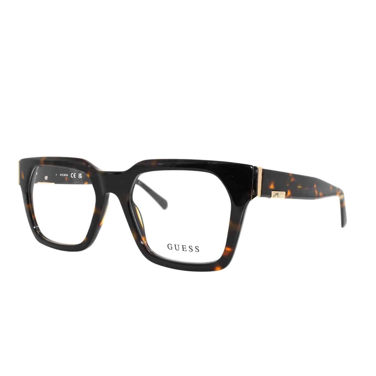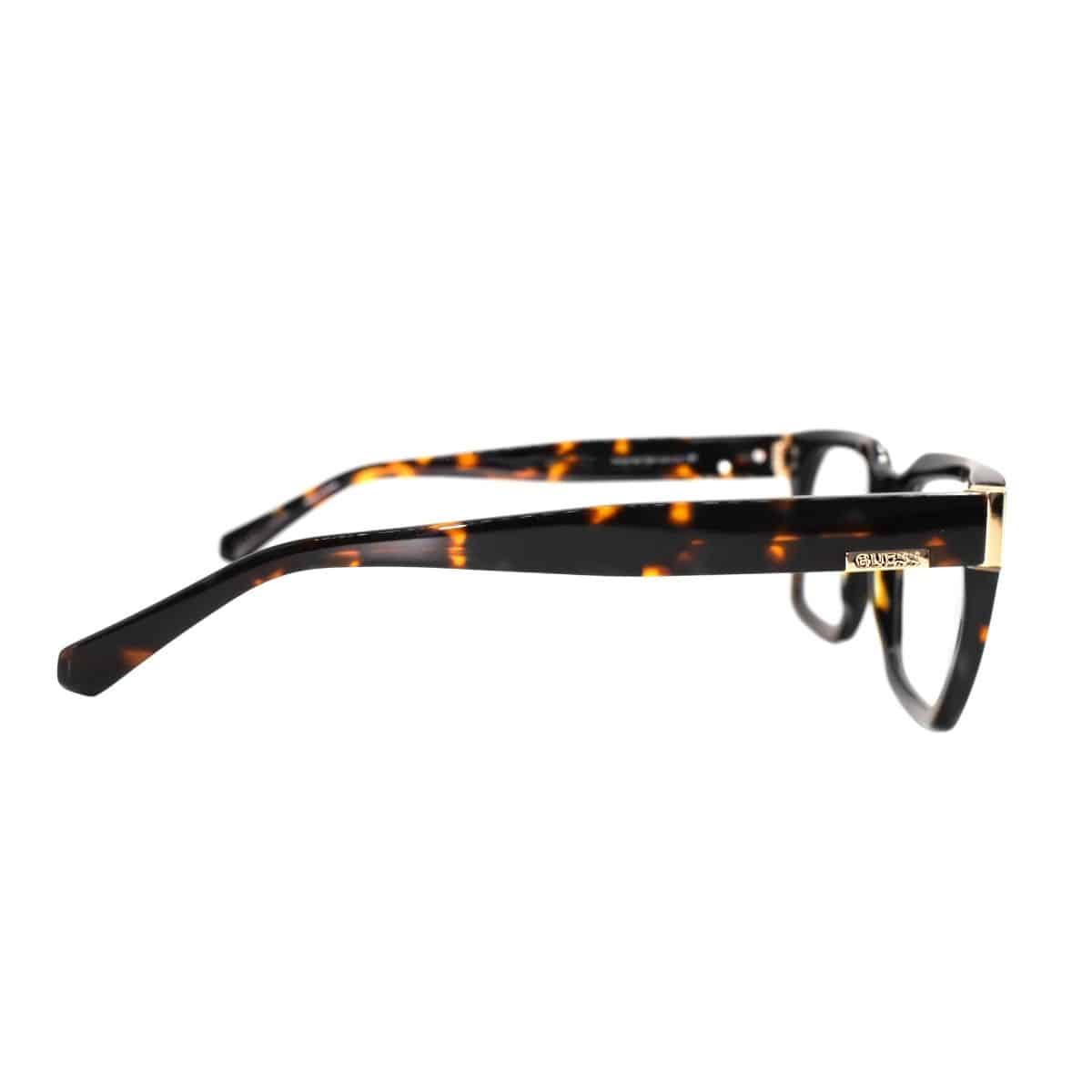 Armazón oftálmico de la marca Guess, con varillas de acetato y marco de metal.