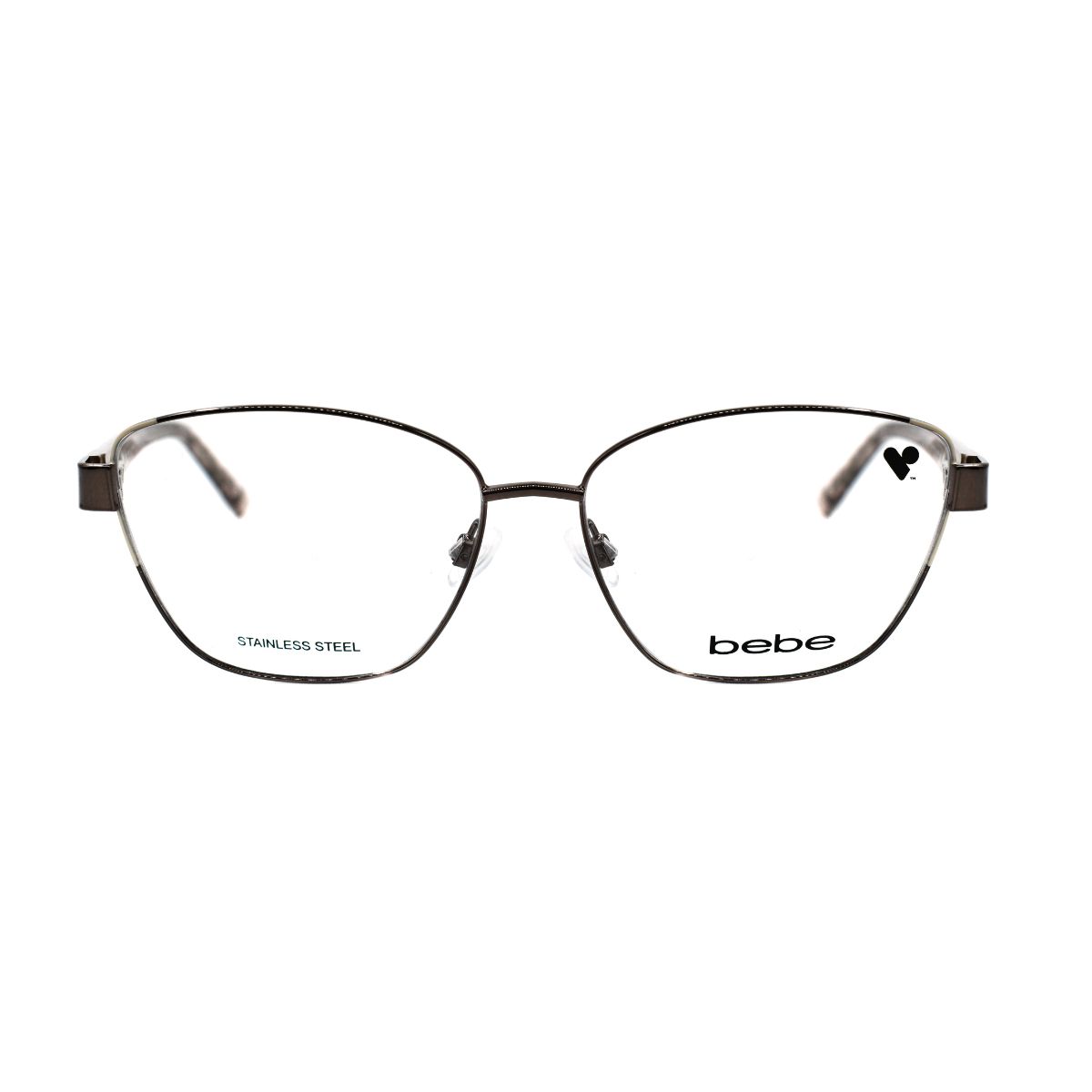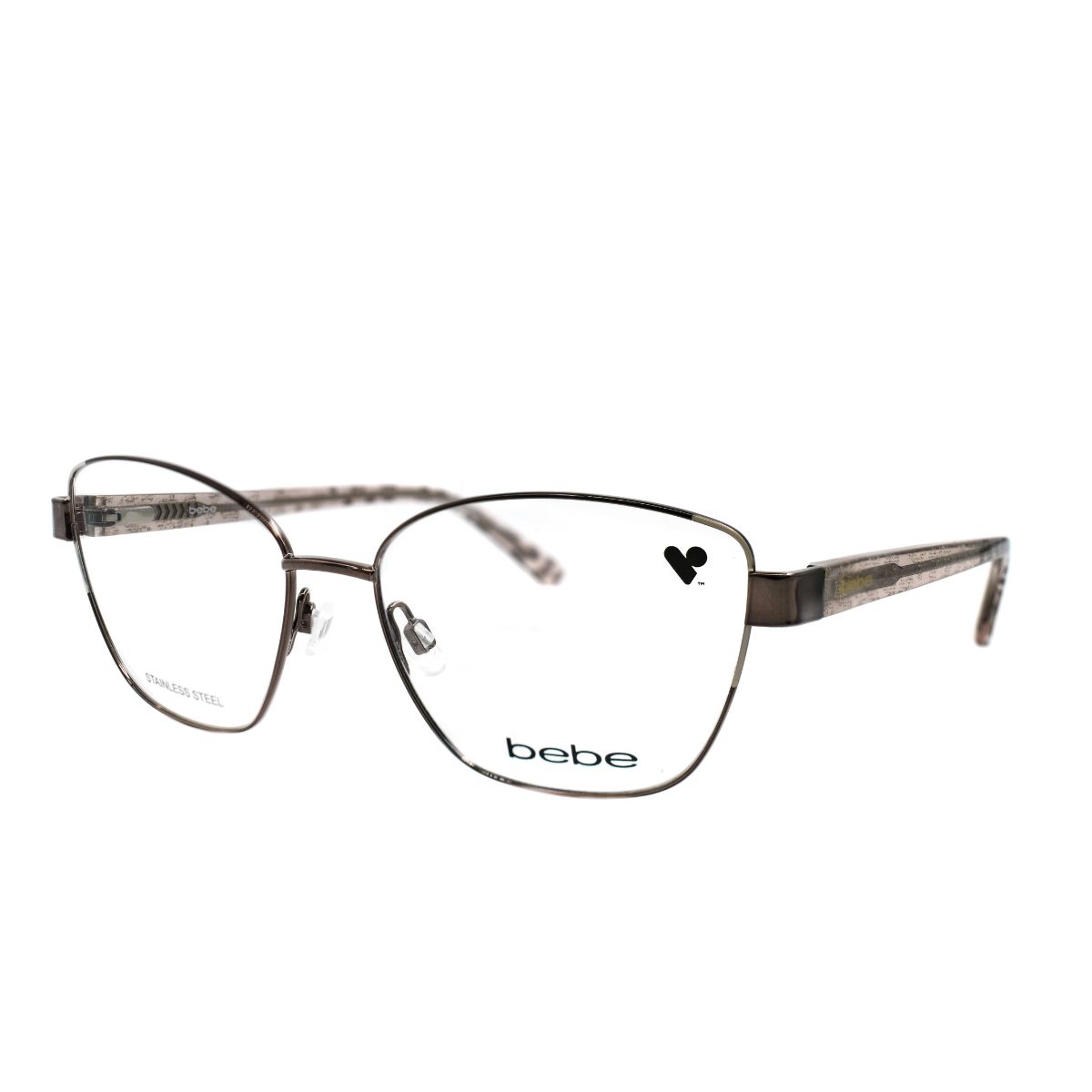 Armazón oftálmico de la marca Bebe, con varillas de acetato y marco de acero inoxidable.