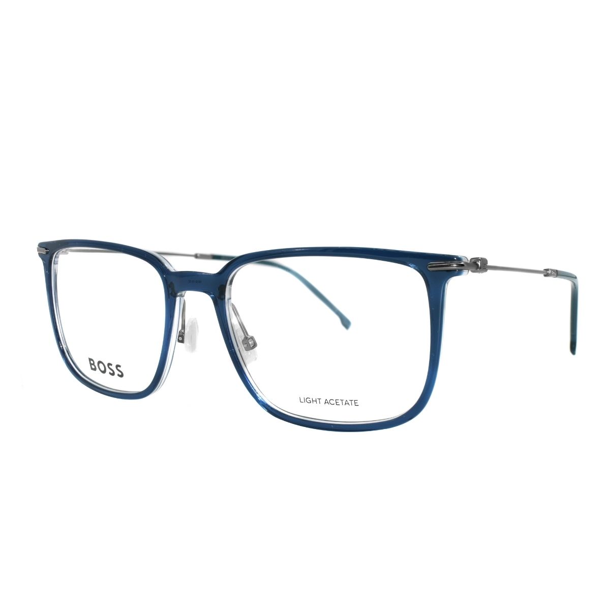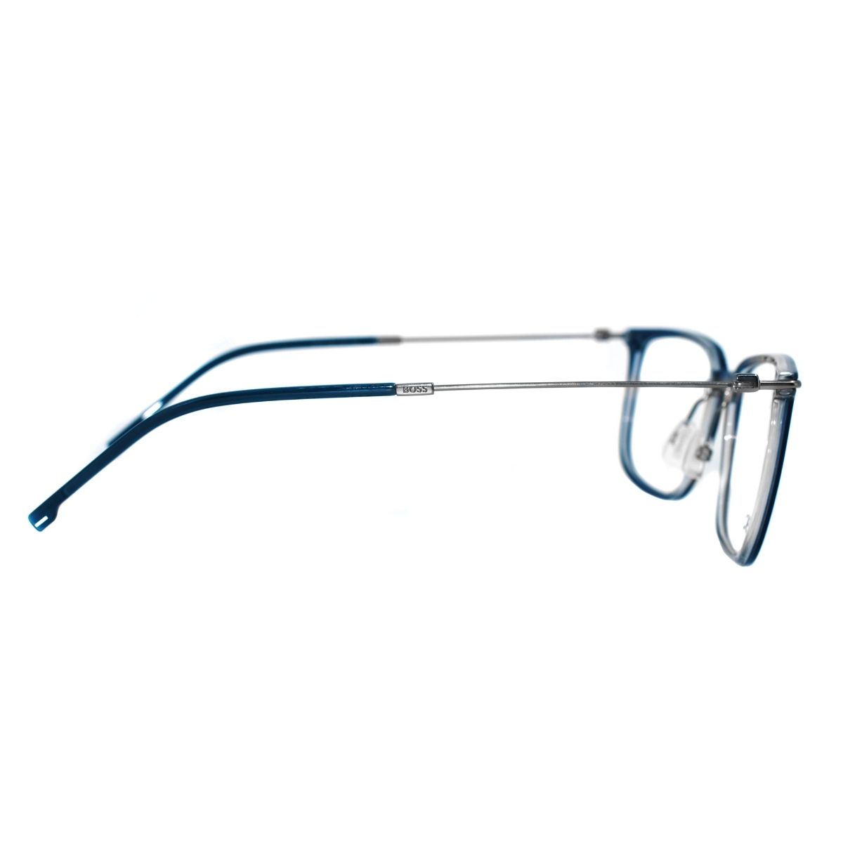 Armazón oftálmico de la marca Boss, con varillas de metal c/acetato y marco de acetato.