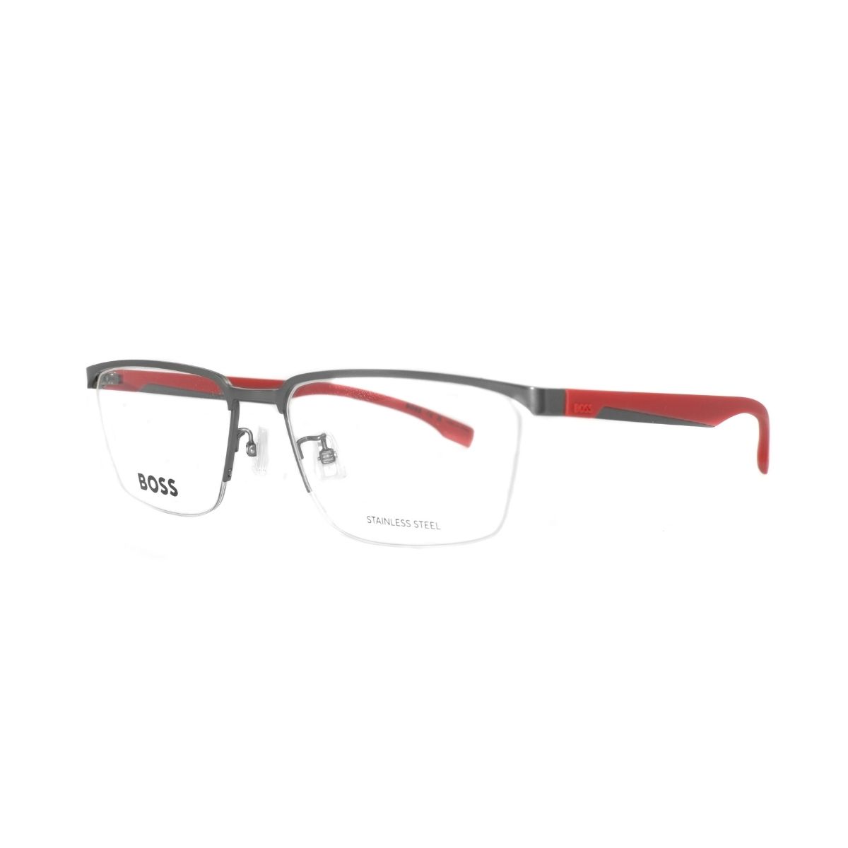 Armazón oftálmico de la marca Boss, con varillas de acero inoxidable / plástico y marco de acero inoxidable.