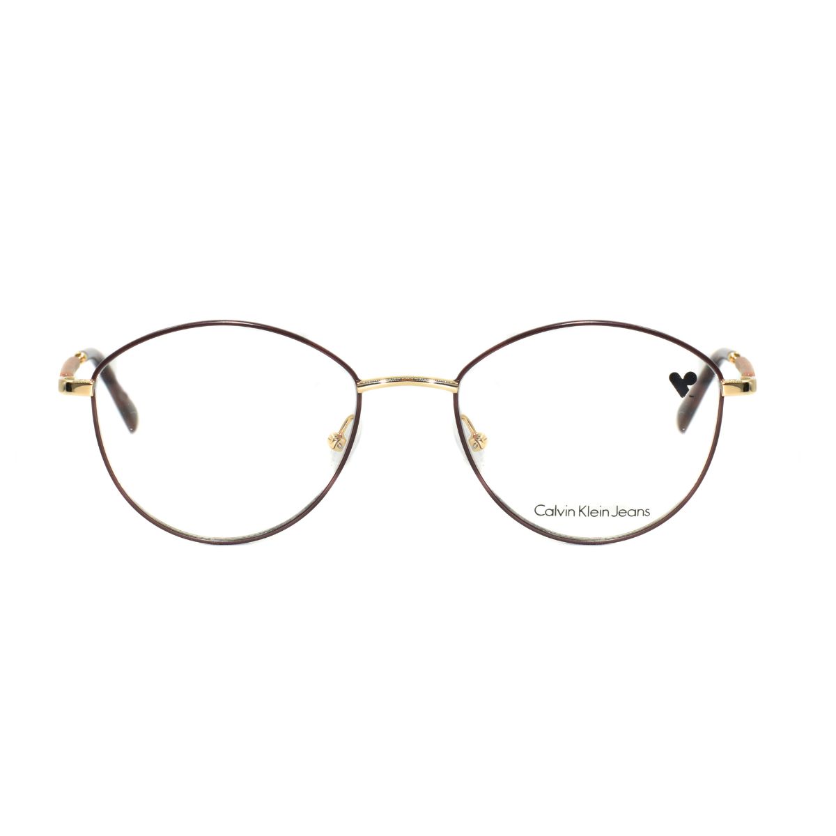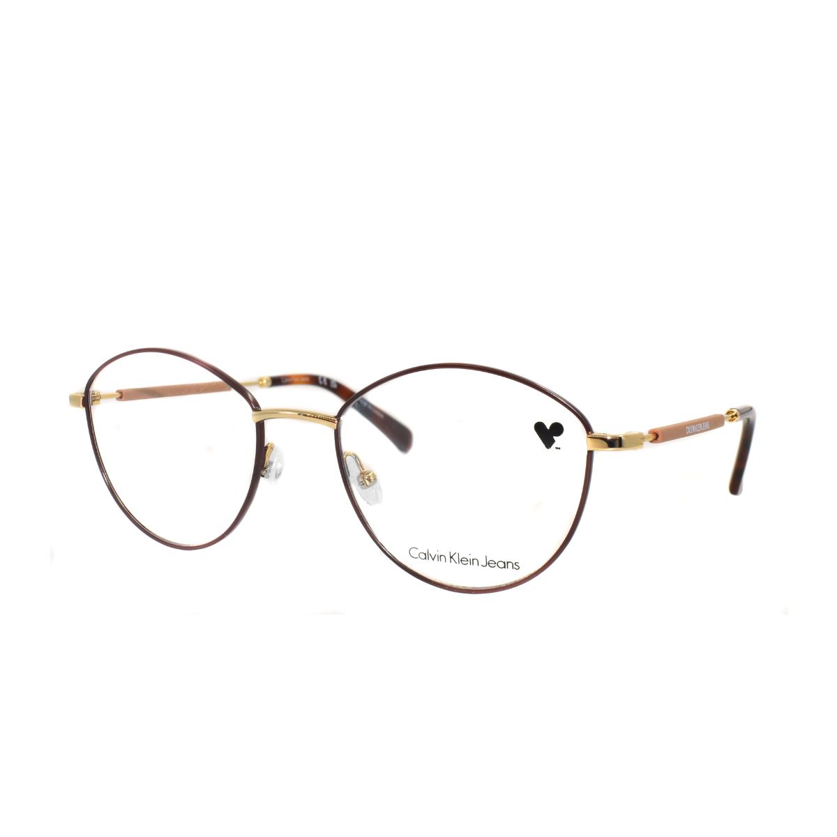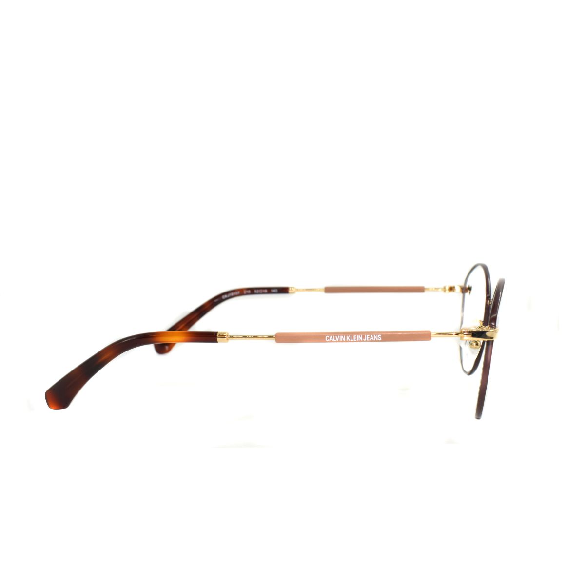 Armazón oftálmico de la marca Calvin Klein Jeans, con varillas de metal c/acetato y marco de metal.