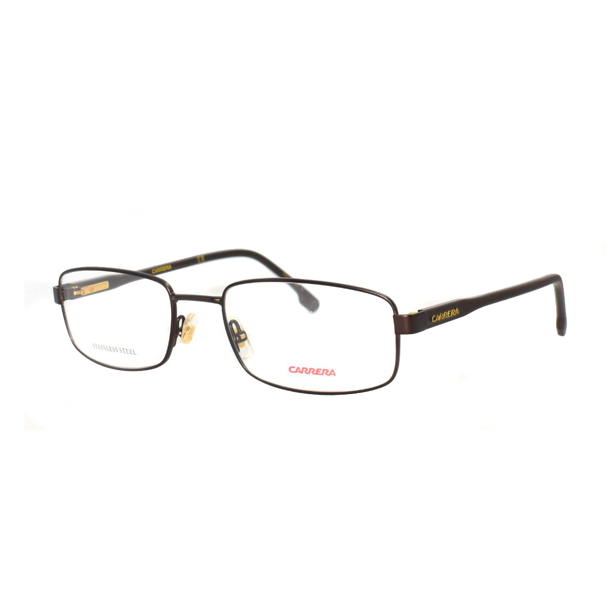 Armazón oftálmico de la marca Carrera, con varillas de acero inoxidable c/ acetato de y marco de acero inoxidable.