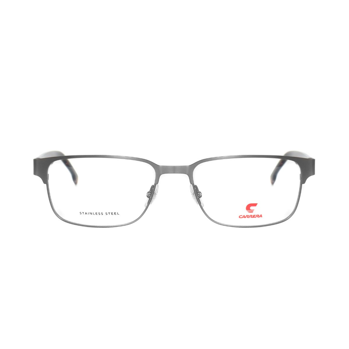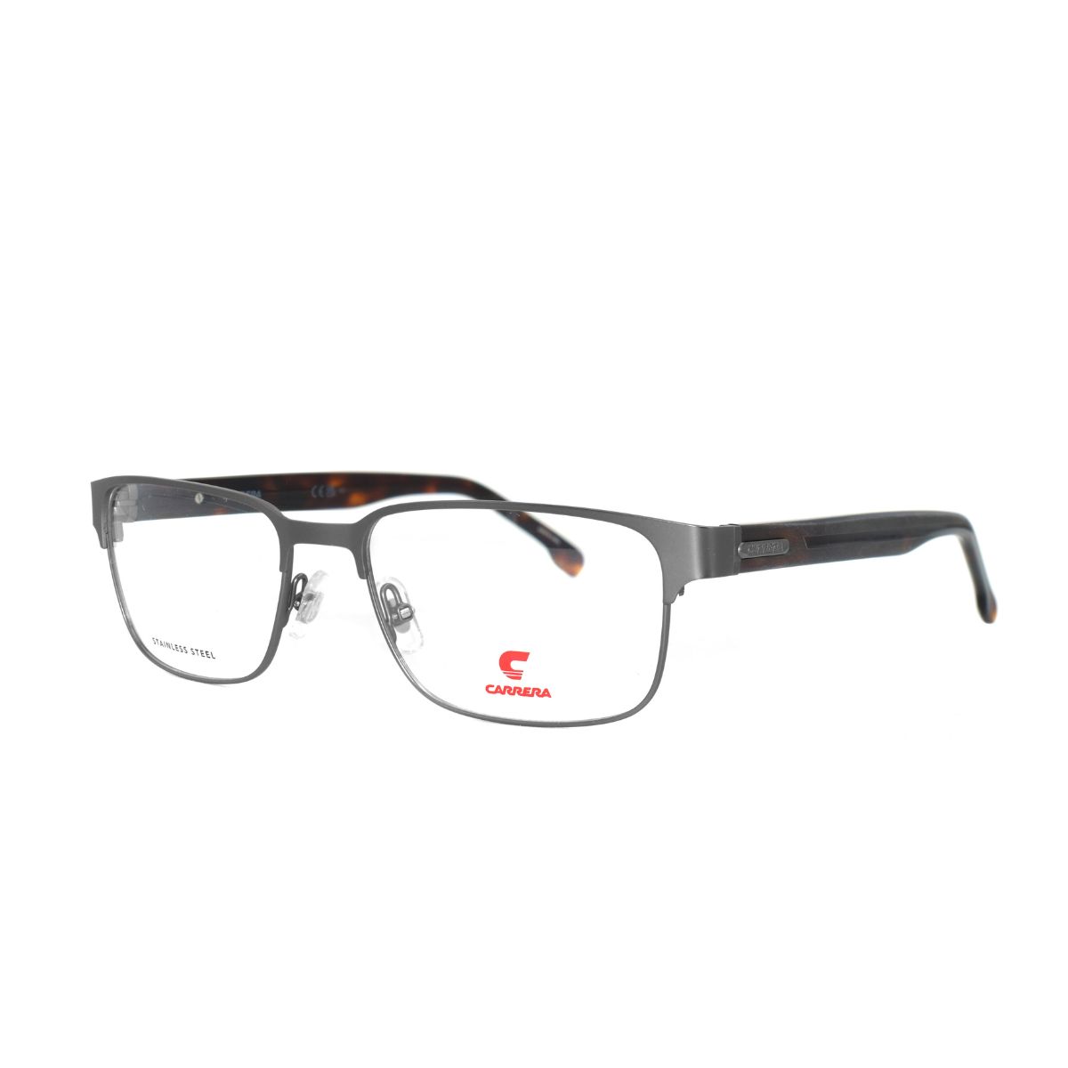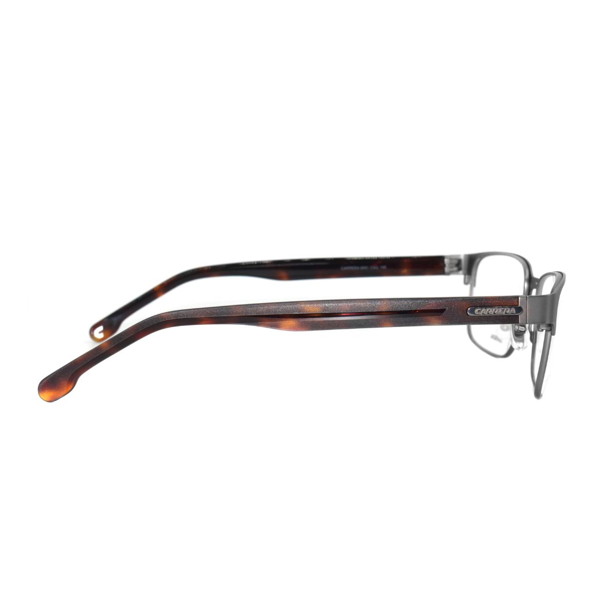 Armazón oftálmico de la marca Carrera, con varillas de acero inoxidable c/ acetato y marco de acero inoxidable.