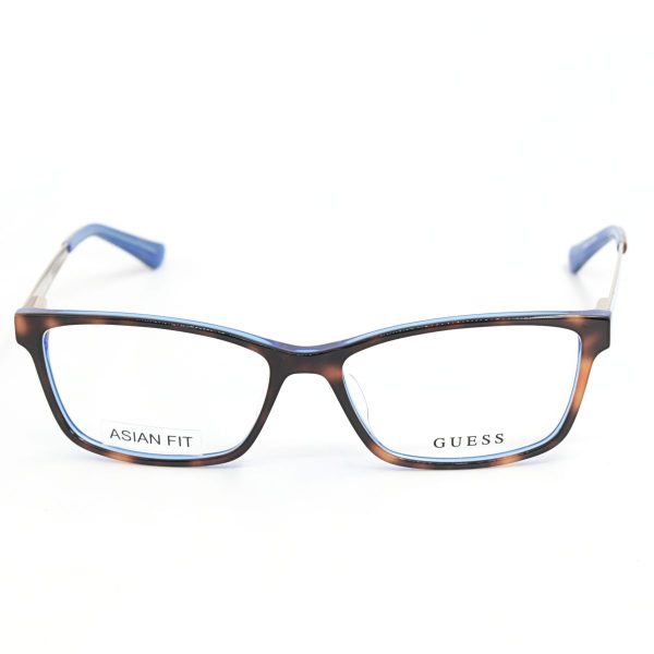 Armazón oftálmico de la marca Guess eyewear con varillas de metal / acetato y marco de acetato.
