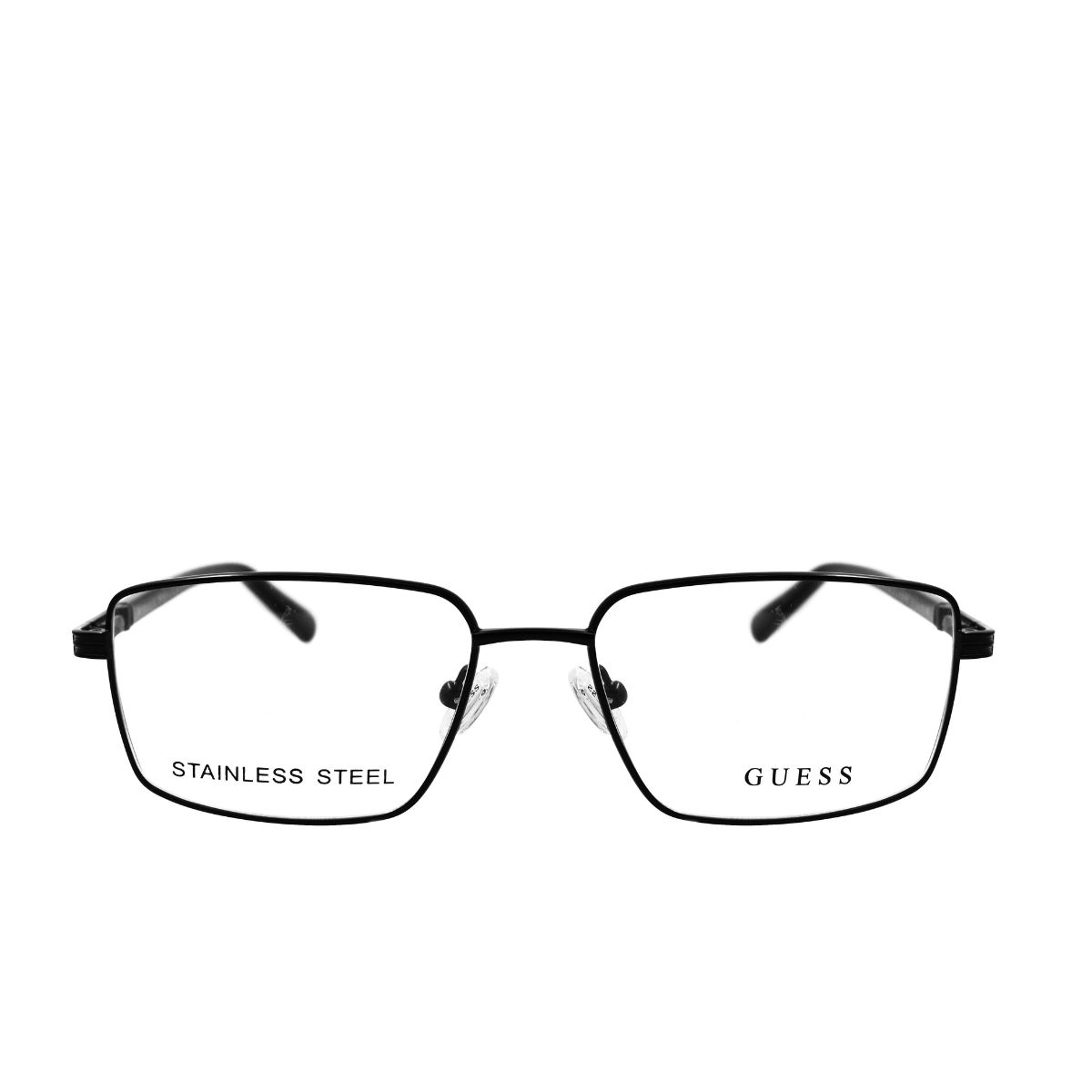 Armazón oftálmico de la marca Guess, con varillas de acetato y marco de acero inoxidable.