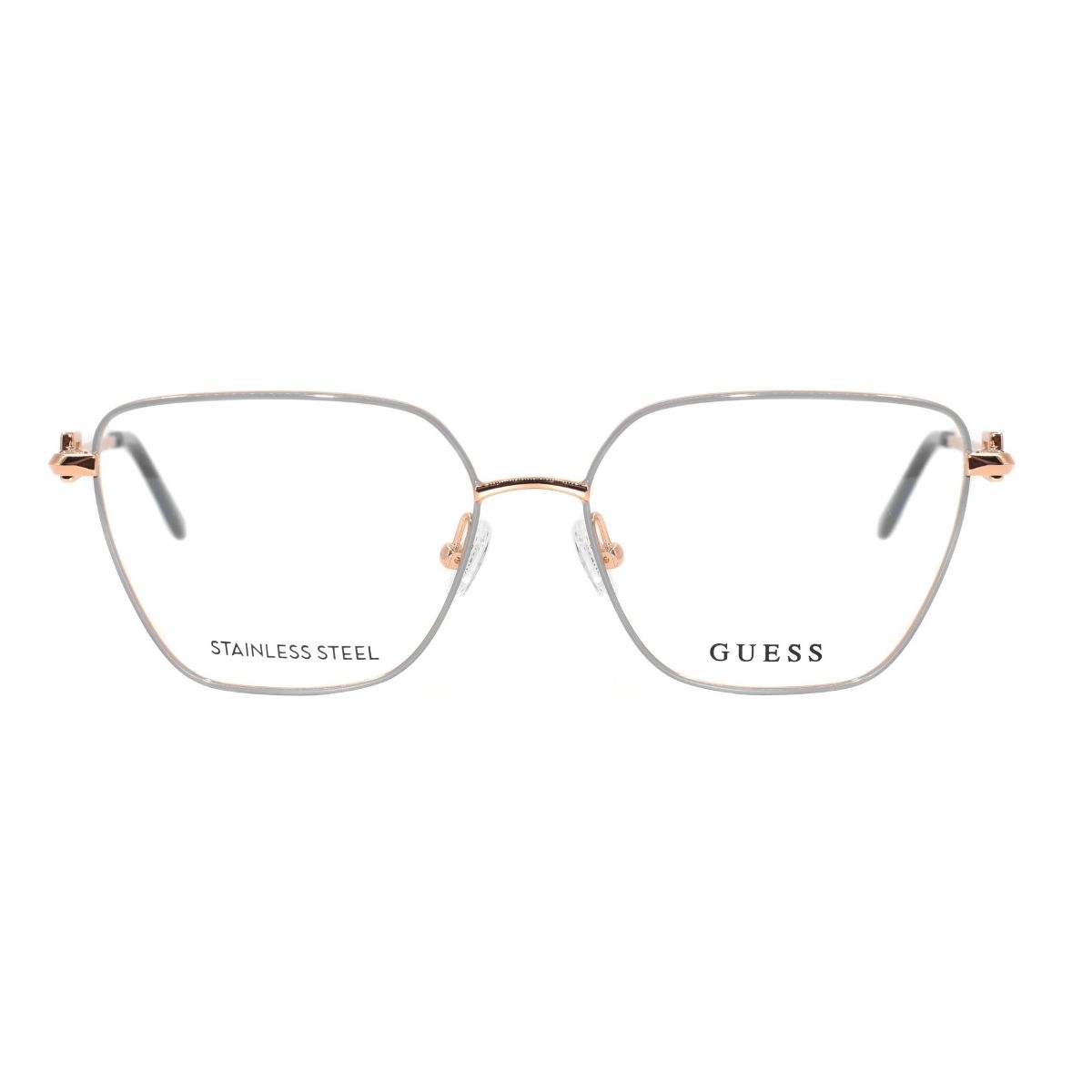 Armazón oftálmico de la marca Guess, con varillas de acero inoxidable c/acetato y marco de acero inoxidable.