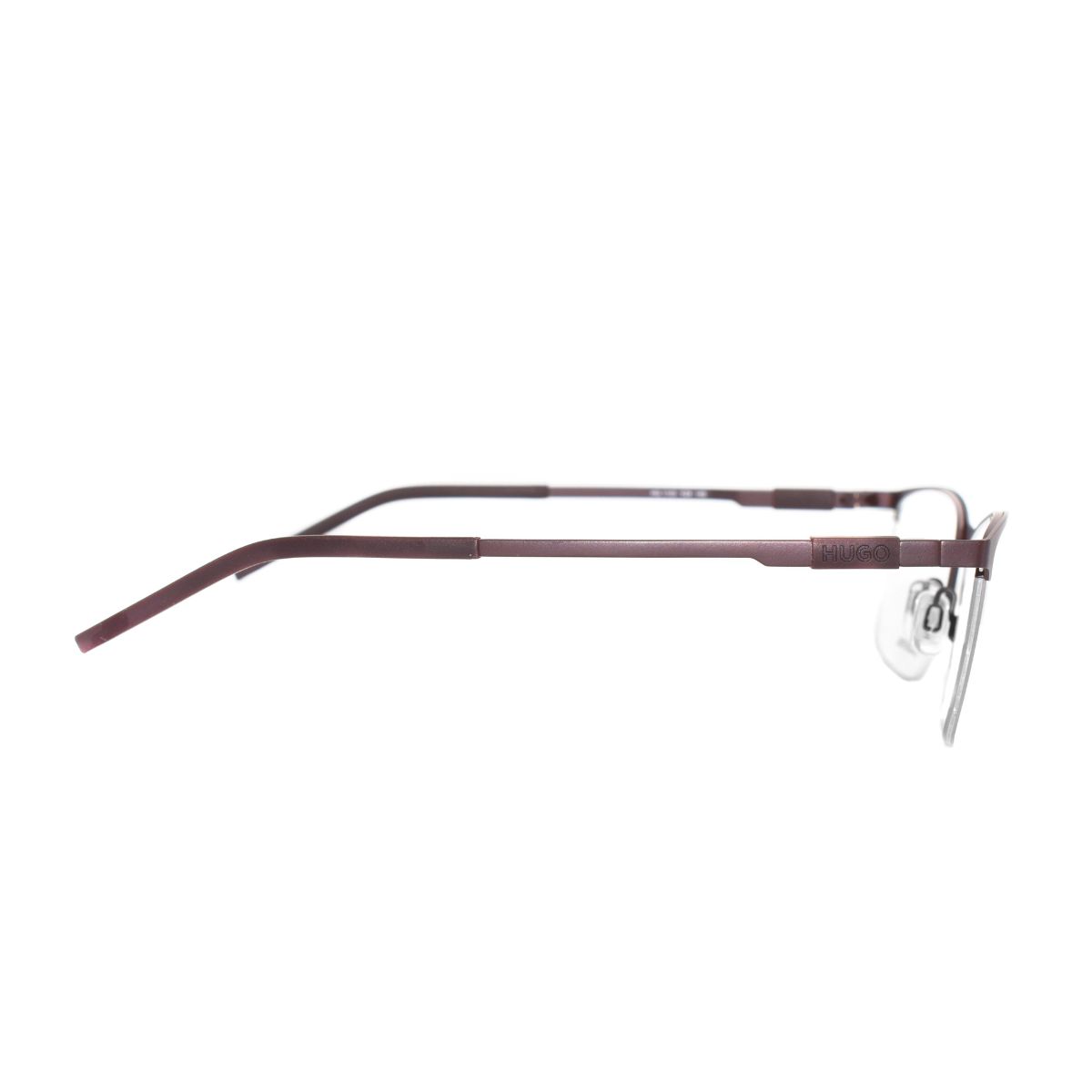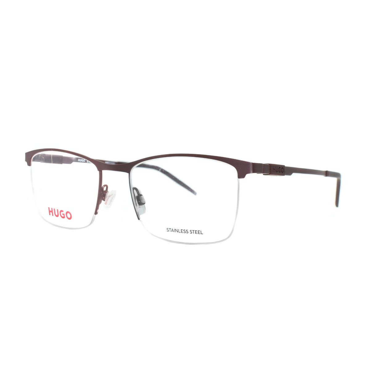 Armazón oftálmico de la marca Hugo Boss, con varillas de acero inoxidable / acetato y marco de acero inoxidable.