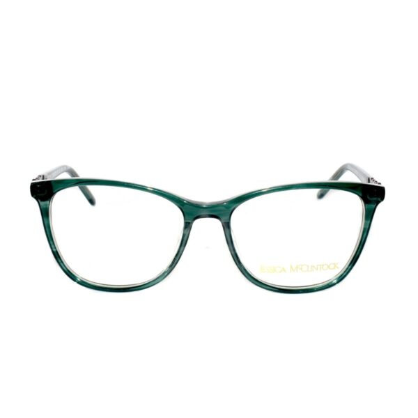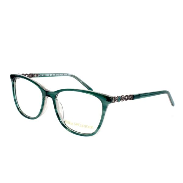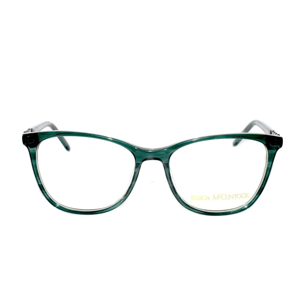 Armazón oftálmico de la marca Jessica McClintock, con varillas de metal / acetato y marco de acetato.