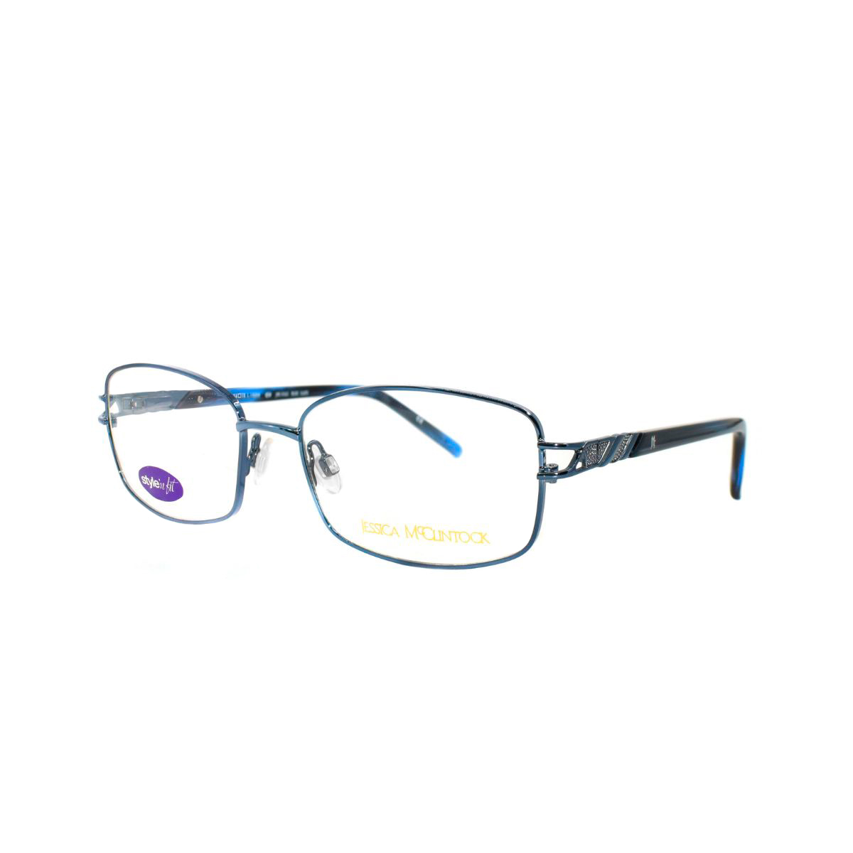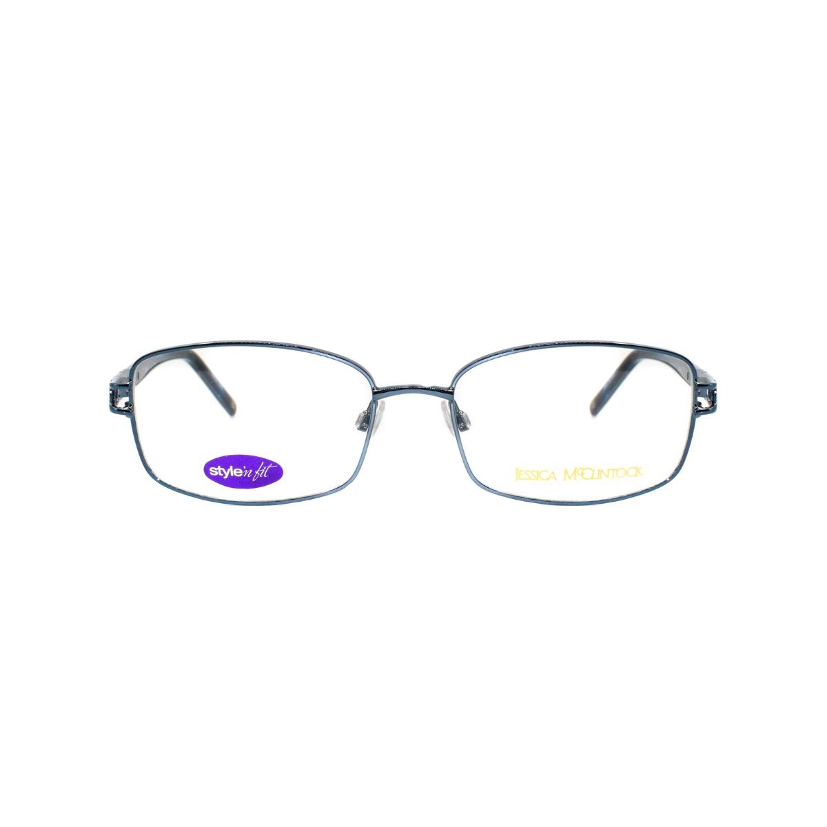 Armazón oftálmico de la marca Jessica McClintock, con varillas de aleación metálica / acetato y marco de aleación metálica.