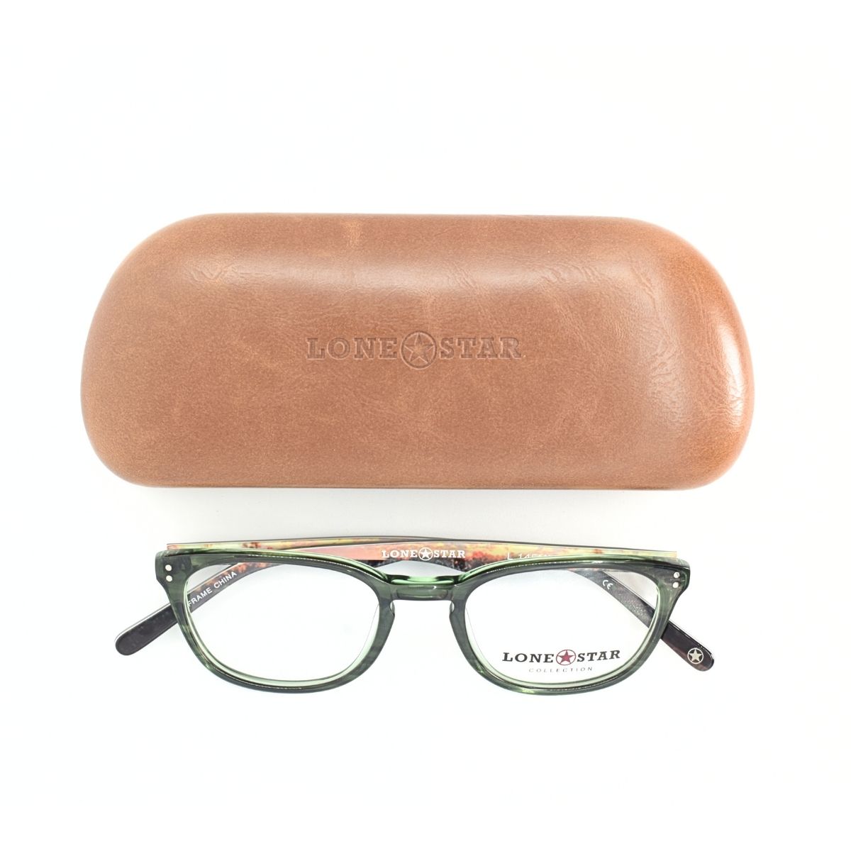 Armazón oftálmico de la marca Lone Star eyewear, con varillas y marco de acetato.