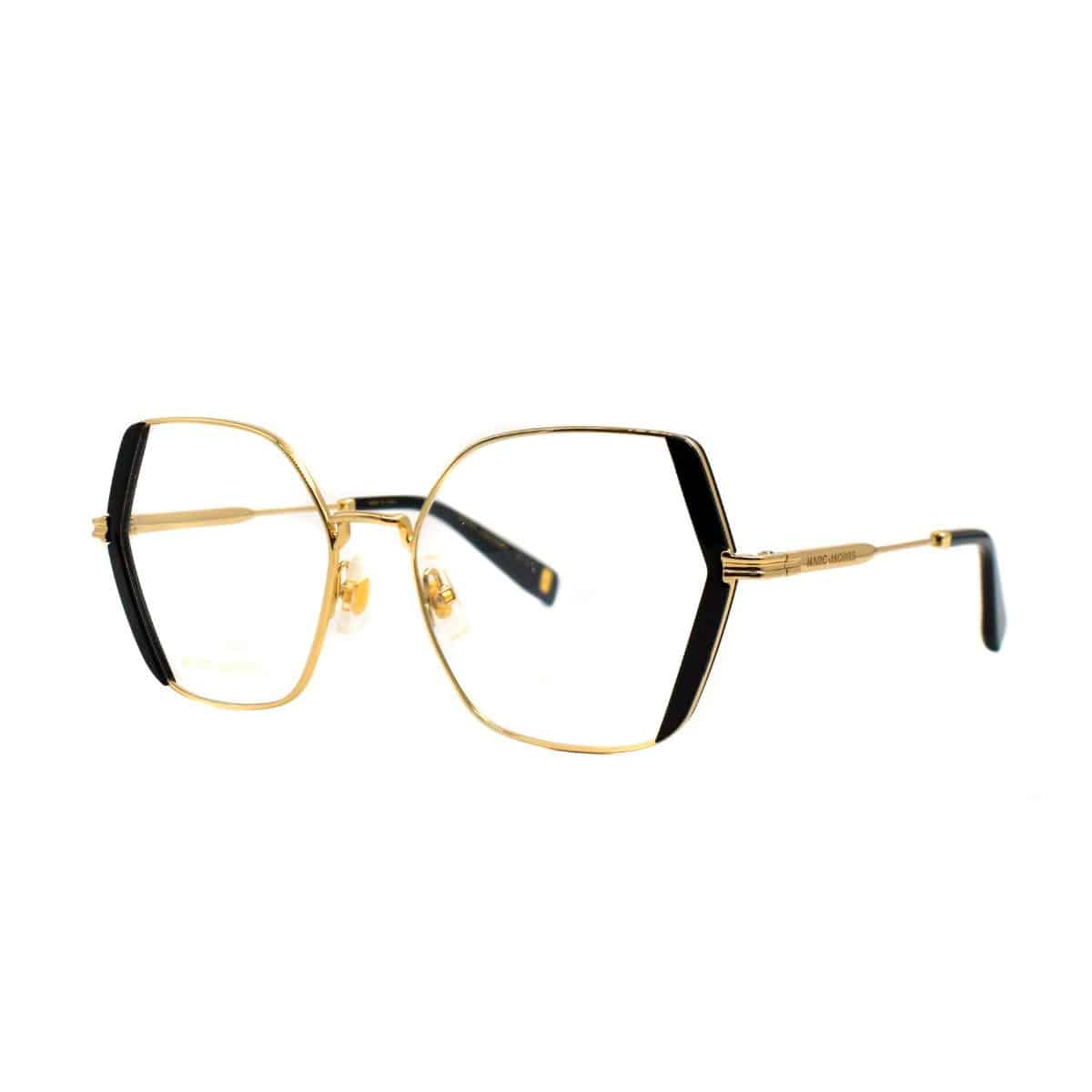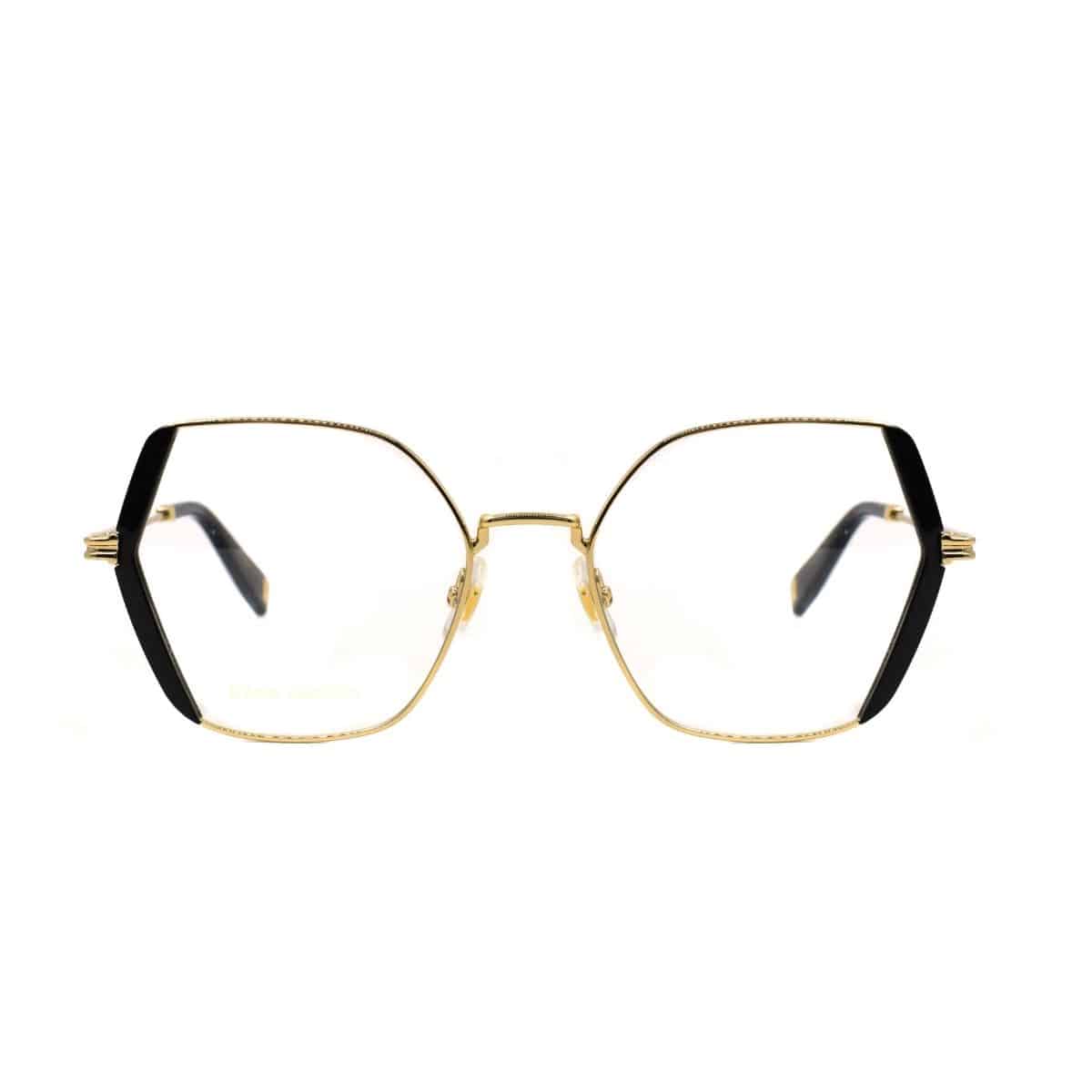 Armazón oftálmico de la marca Marc Jacobs, con varillas y marco de acero inoxidable c/ acetato.