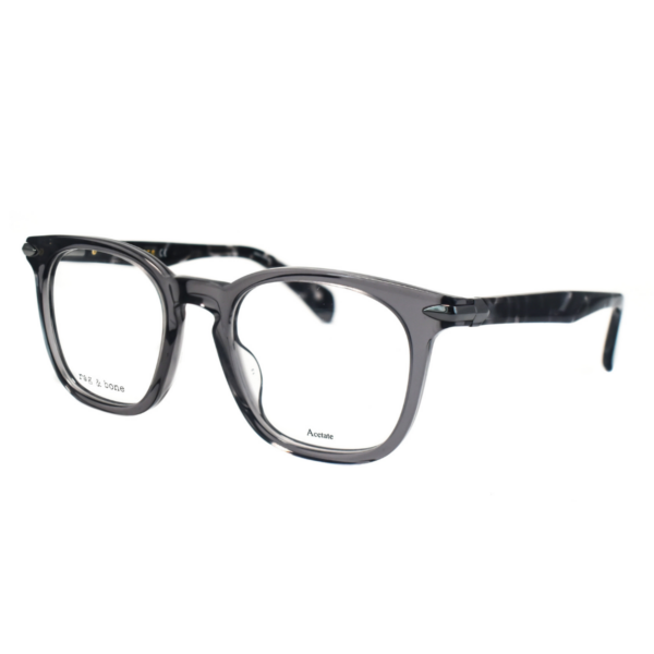 Armazón oftálmico de la marca Rag & Bone, con varillas y marco de acetato