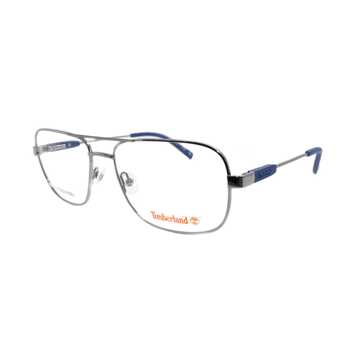Armazón oftálmico de la marca Timberland, con varillas de metal / acetato y marco de metal.