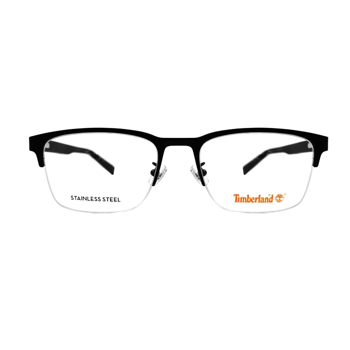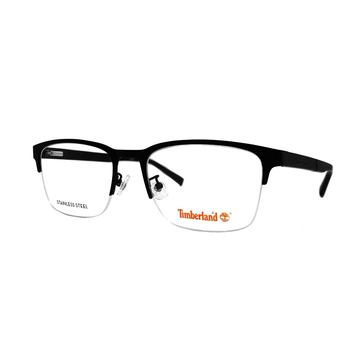 Armazón oftálmico de la marca Timberland, con varillas de acetato y marco de metal.