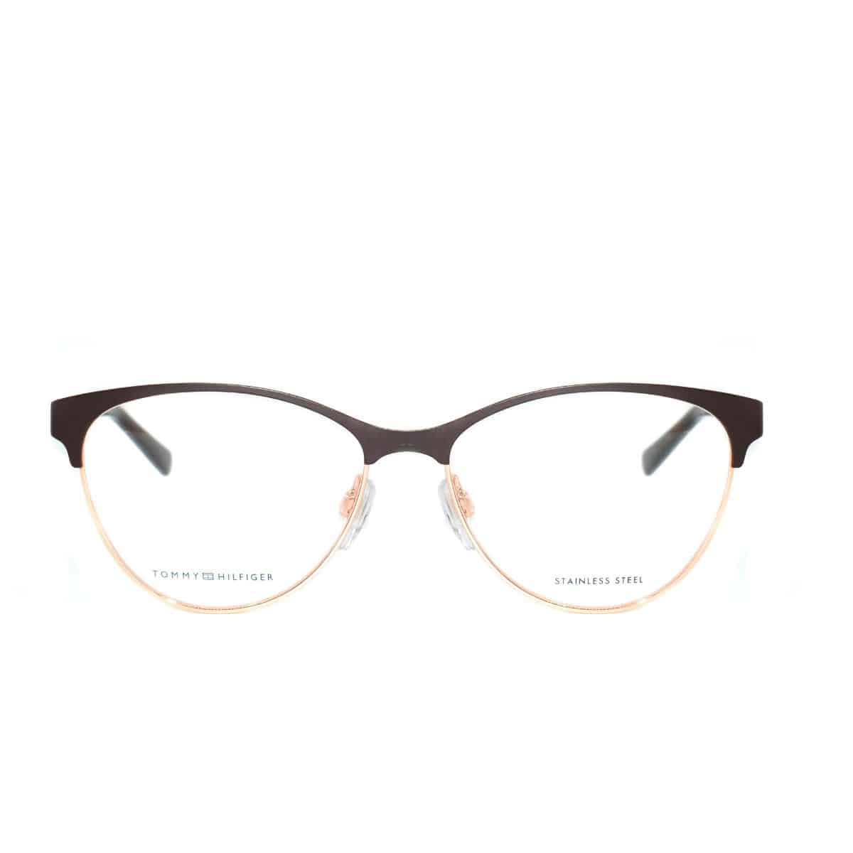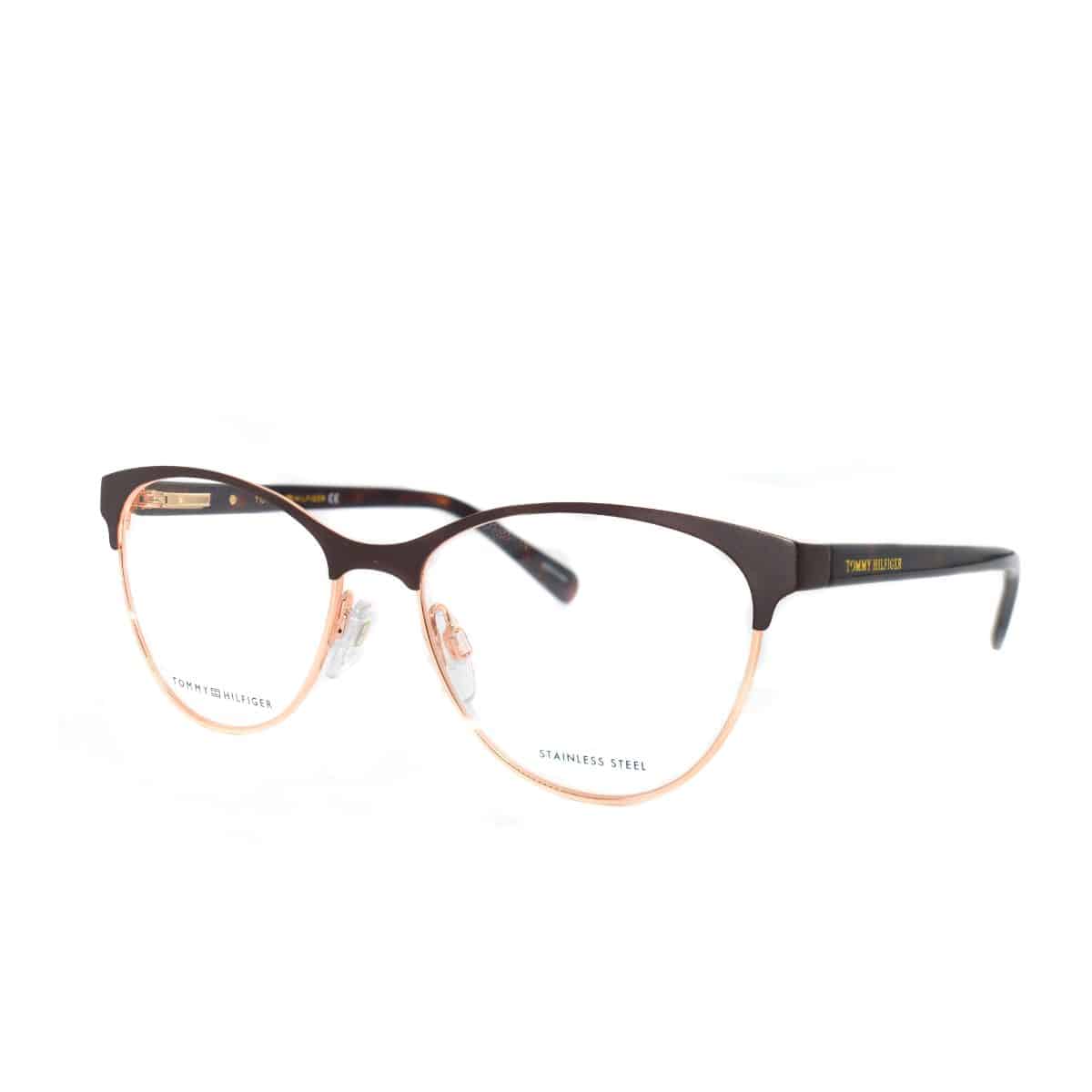 Armazón oftálmico de la marca Tommy Hilfiger, con varillas de acetato y marco de metal.